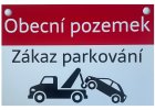 Plechová cedule s jasným upozorněním na zákaz parkování v dané oblasti. Odolná a dobře viditelná, vhodná pro soukromé pozemky, firemní areály i veřejná místa.